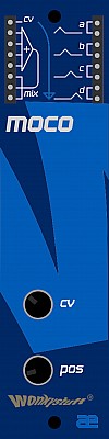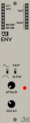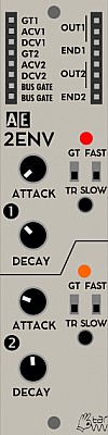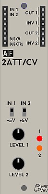 - Switch IN2/MAN - switch between attenuating signal from IN2 or issue CV between 0-5V (the original Eurorack module does not have this switch)