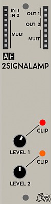 Some modules in the AE system produce very low volume or signal levels, eg. GRAINS, VCO, (particularly the triangle wave), and sometimes the SOLINA . With the SIGNALAMP you can increase the signal of these modules so they can hold their own in a mix with other much stronger signals. Also can be useful to boost heavily filtered audio....