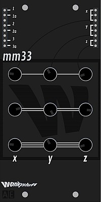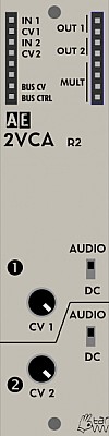 This 1/3 height micro module provides a two channel VCA similar to the 4VCA module.
