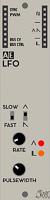 This 1/3 height micro module provides a tiny LFO with three different waveforms: triangle, sawtooth and square wave. It also offers CV control for pulsewidth modulation for the square wave and a sync input to synchronise the waves with a a reference signal.