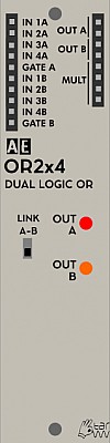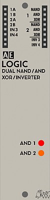 This 1/3 height micro module provides various logic gates and inverted functions. There are 4 channels for logic operations, two channels for two signals to be combined using either NAND, AND or XOR logic and two channels for inverting a signal.