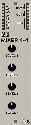 This 1/3 height micro module provides a buffered 4 channel multiple. This can be used for multiplying cv, trigger and gate signals without voltage loss. One input signal will be routed to two duplicate outputs.