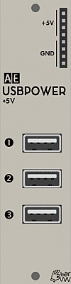 This module provides 3 standard USB connections for powering external equipment. Take care not to draw more power than your AE Modular power supply offers. Check the milliampere (mA) value on the power supply and your attached devices.